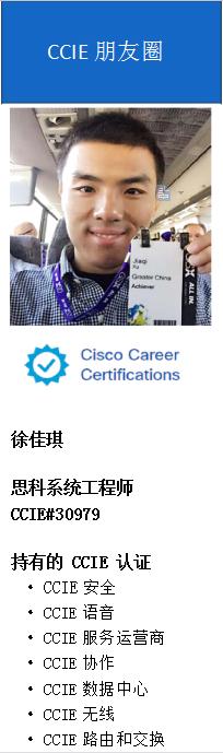 寄语各位 CCIE 学习者,不同学习时期需要不同的学习方法,首要是把基础打好。对于 CCIE 的初学者,我认为不需要急于考证。因为如果你的目标是成为一名 CCIE,那么你早晚会取得的。学习网络基础的扎实性是非常必要的,这对于以后的工作也会起到重要作用。万幢高楼平地起,只有把基础打好,慢慢地你会发现之后的路非常广阔。甚至再去学习其他方向的 CCIE你也会更加融汇贯通。在打基础阶段,多花时间看书是很必要的。我是先从CCIE 学习指南开始,到TCP / IP路由技术(第一卷)、TCP / IP路由技术(第二卷)。接下来可以参加个培训班,这一步不仅是帮你梳理知识,更是找到志同道合的备考者一起学习。你遇到的每一位同考CCIE认证的朋友都来自于不同的工作领域,一起交流学习会产生会让自己受益良多。当你打算再考取多个认证时,建议与备考的朋友一起协作学习。我曾与思科很多备考CCIE数据中心认证的同事组成了一个学习小组,共同备考。我们在内部搭建一个lab做练习,哪怕是分解的lab,也是可以学到很多内容。遇到问题时大家也可以通过讨论解决。在一段集中的学习之后,我们相约一起去考证,大大地提高了大家的考试通过率。我已经获得了七个CCIE,但工作中依然还是会有挑战,依然会遇到不懂的问题。CCIE认证只是一个小小的里程碑。更多的是教会你如何入门和利用一种科学的学习方式去获取知识。你要做到的是继续学习新技术,时刻提醒自己要与时俱进,像海绵一样不断汲取新的知识。CCIE 认证是我职场生涯中永恒的宝贵财富,我会一直追随着 CCIE 认证飞得更高、走得更远。